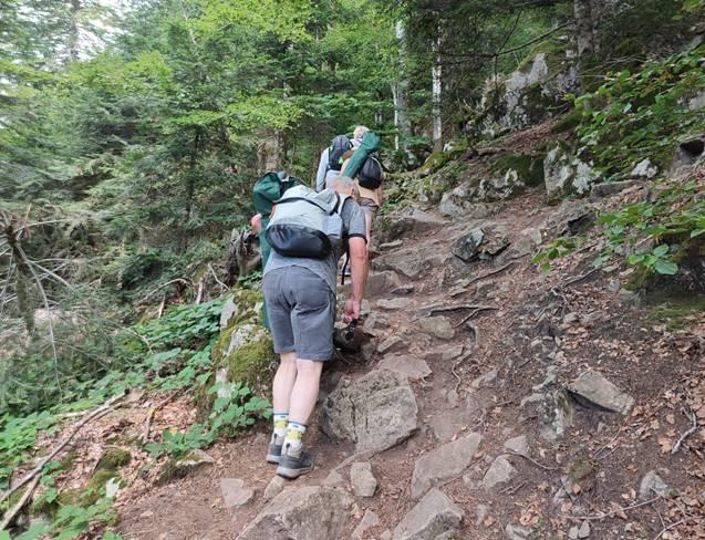 - Les gens devant moi ont du mal ; ça devient technique et glissant à certains endroits (heureusement, il fait sec)