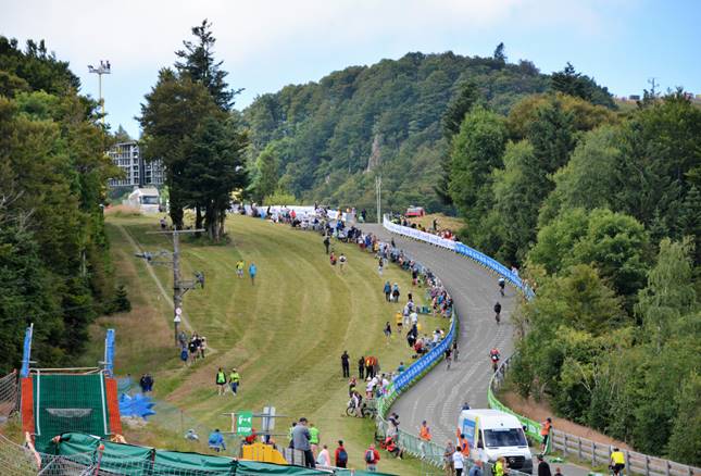 Arrivé en bas, je consulte ma montre qui m’annonce avoir marché pratiquement 18 km en 3h34 ; je suis content de retrouver mon véhicule pour pouvoir m’y assoir après avoir enfilé des vêtements secs. En résumé, la Super Planche est un endroit vraiment à découvrir mais il faut être en bonne condition physique pour atteindre le sommet. Mieux vaut être prévenu. Il est possible de réserver le trajet avec des navettes (toutes réservées à l’avance et insuffisantes, de ce que j’ai entendu). Chapeau bas aux coureurs pour gravir ces pentes folles et à tous ces spectateurs passionnés ! J’ai passé une superbe journée, très heureux de l’avoir fait mais je ne pense pas y retourner un jour. Mais comme il ne faut jamais dire jamais …