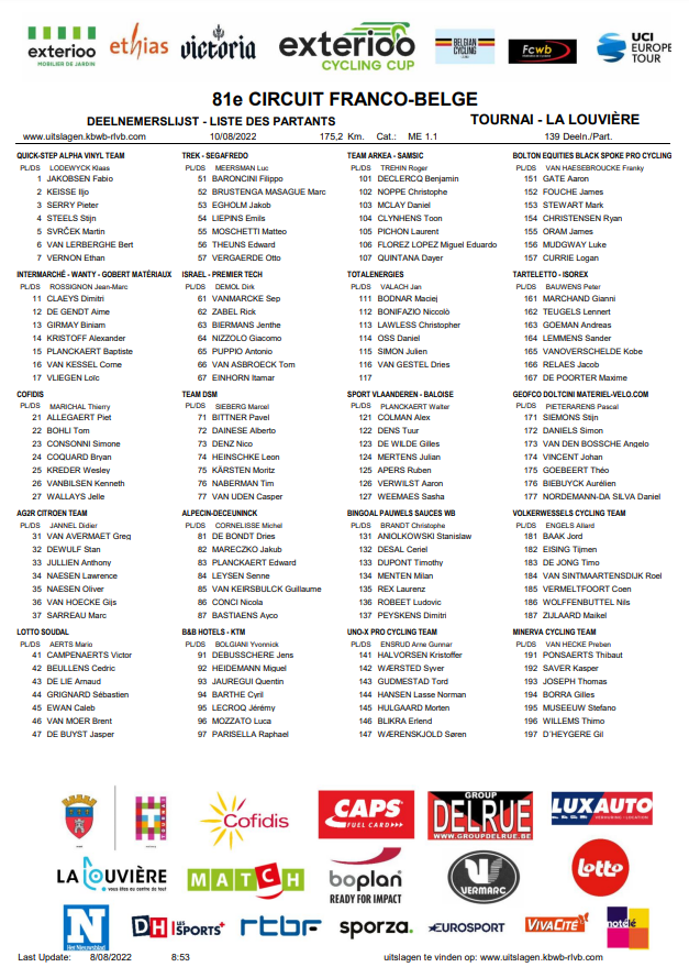 Partants. (et plus sur le site de l’organisateur ou « BELGIAN CYCLING »)