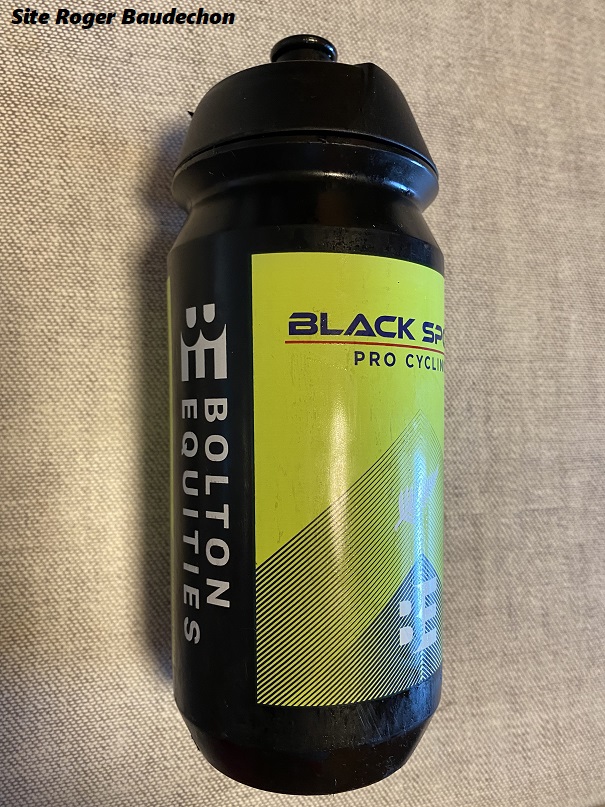 Photo. Le bidon donné par MichelG. Merci à lui !!! Précisions de MichelG, le bidon est celui du coureur de l’échappée. Il lui a lancé dans les pieds au ravito à Ellezelles.