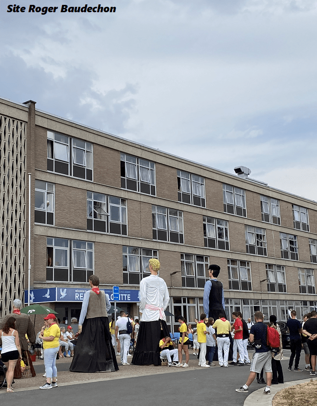 Photo. Les géants en face de la « RESIDENCE RENE MAGRITTE ».