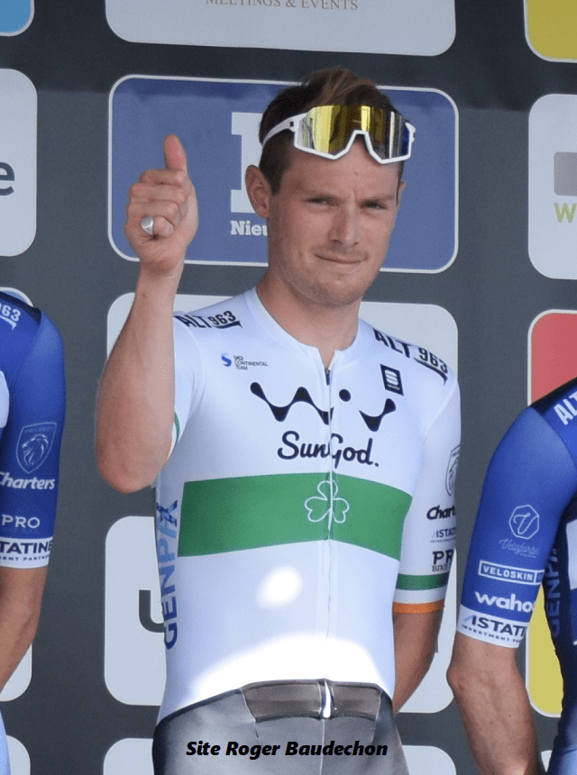 A MERE, TOWNSEND Rory (27 ans – « WIV SUNGOD TEAM ») remporte l’épreuve avec une minute d’avance sur son second. Le nouveau champion d’Irlande a terminé les 156,8 km en 03h38 min. 89 concurrents étaient sur la ligne de départ. Le second est BIRCHILL et le podium est clôturé par LEMMEN. 4.JOSEPH, 6.CLAEYS A, 7.BAUGNIES, 11.DE BOCK, 14.SUTTON, 16.DE ROOZE, 23.LEWIS, 27.DESMECHT, 35.MAGINET, … . Bravo au vainqueur !!!
