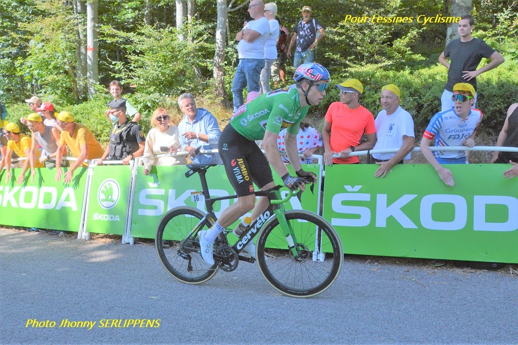 Photo. VAN AERT sera-t-il l’homme de la fin de saison ??? En « vert » sur le « TDF ». Image de JhonnyS que nous remercions. Et KOPECKY chez les dames ???