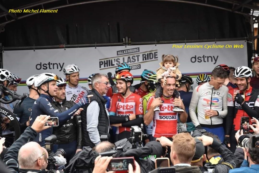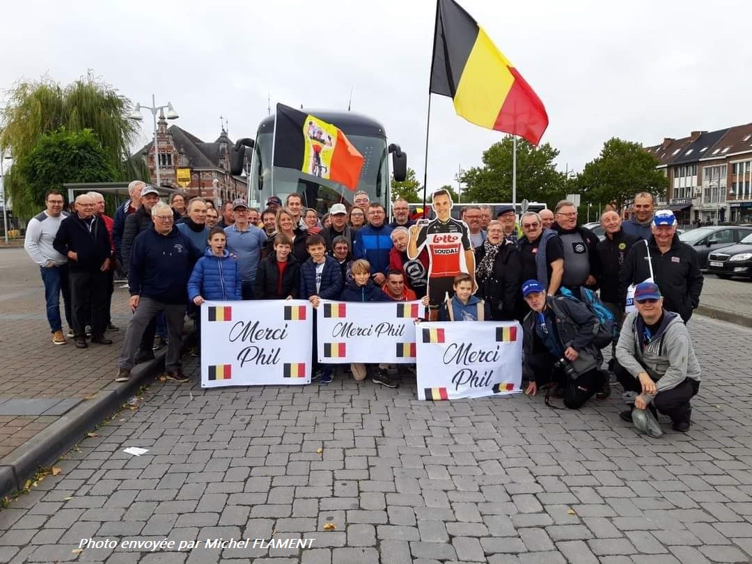 « ON PEUT QU’MINCHER LES TOURNAISIENS SONT LA » (et d’ailleurs). Manifestement, un bus est parti de la gare de Tournai pour les Pays-Bas. MichelF étaient de la partie. Il ne pourrait rater aucun événement … même avec une jambe cassée. Dans le groupe, nous remarquons la présence du camarade Jean-Guy SAPIN (« Amis De Paris-Roubaix ») mais également Marc DUQUENNOY, l’organisateur de nombreuses épreuves cyclistes. La branche picarde des supporters de Philippe GILBERT avait tenu à l’honorer pour sa dernière sortie. #TopATous 👍