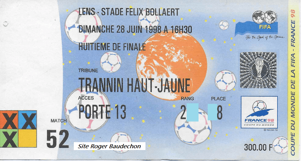 Voici quelques anecdotes survenues lors de la Coupe du Monde de Football qui s’est tenue en FRANCE (1998). Nous avions pris des places pour LENS (Stade BOLLAERT) en espérant que la Belgique se retrouve en huitième de finale. Hélas, elle n’a pas franchi le cap des « groupes ». Le 28 juin 1998, nous étions donc à LENS >>> parkings à des kms, navettes pour arriver au stade, foule immense à l’entrée, public nerveux et bruyant, … ambiance des grands jours. Les nordistes savent mettre le feu !!! Et puis nous, deux belges perdus dans la masse. Imaginez, nous étions là pour assister (hasard) à FRANCE-PARAGUAY. La folie. Un suspens insoutenable. Même Aimé JACQUET perdait son calme. 0-0 et BLANC qui met une patate dans les prolongations. Les murs du stade ont failli tomber … . La FRANCE partait en quart de finale et puis en finale. Qu’elle gagnera en battant le BRESIL par 3 buts à 0. Pour sortir de LENS, nous avons mis des heures. Nous avons vécu un épisode historique. #SouvenirsSouvenirs #OraganisationImpeccable