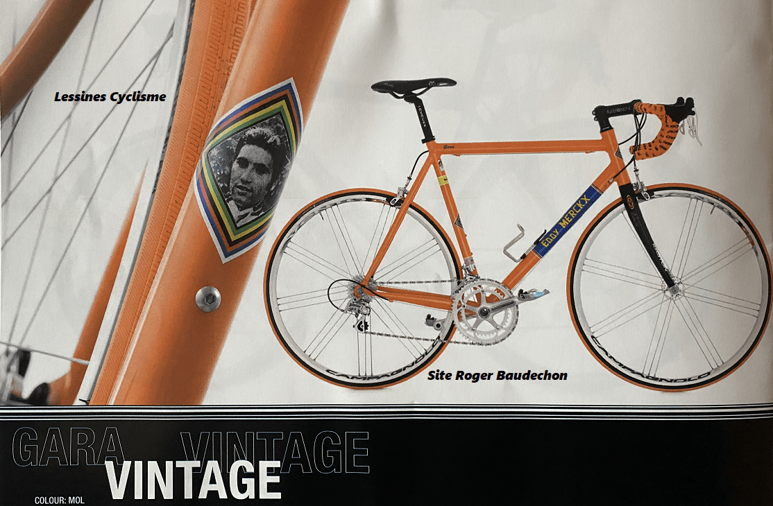 Dans son catalogue de 2007, la marque « EDDY MERCKX » (Meise) proposait un (faux) « VINTAGE » – modèle « GARA » (classic ou sloping) – en ALU. Monté avec du « CAMPAGNOLO » basique, le vélo coûtait 1.300 €. De la qualité à prix raisonnable. #Évolution⬆
