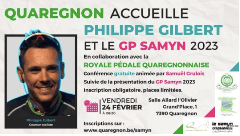 - « LE GP SAMYN ». La présentation officielle se déroule le 24/02 + soirée Philippe GILBERT. La Ville de Quaregnon assure les réservations. Ouvertes à 08h00, vers 11h30, le site affichait déjà complet. Nous n’y serons pas. Néanmoins, nous remercions le Président et le Webmaster pour avoir répondu à nos interpellations. Nous en profitons pour souhaiter un prompt rétablissement à RonaldC.