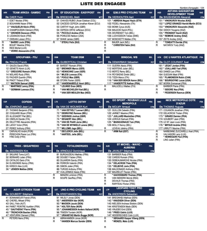 Voici la liste des prétendants au « TOUR DES ALPES ET DU VAR » :