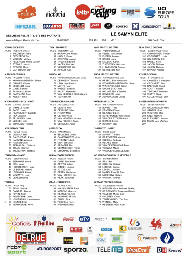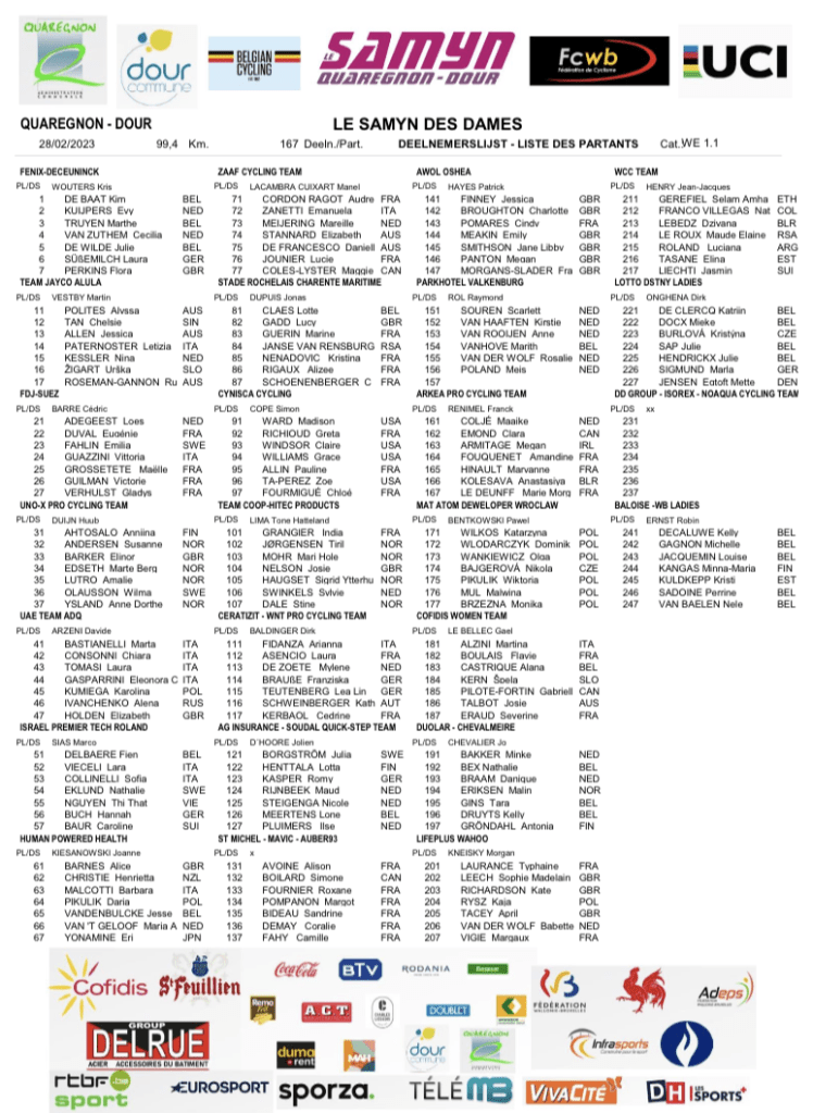 Nous ne verrons pas les dames. Mais nous nous rattraperons car nous devrions être à GOOIK. (08/03) Saviez-vous que la première compétitrice remportera le prix de 560 € ? Alors que chez les messieurs, le vainqueur repartira avec 5.785 €. Il y a encore du chemin à parcourir pour une égalité parfaite. Ce n’est pas propre au « SAMYN ». Ce sont des barèmes imposés.
