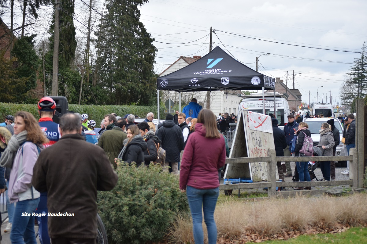 ESCANAFFLES entre monts … et merveilles. Le Mont-Saint-Aubert d’un côté et le Mont-de-l’Enclus de l’autre. Sans omettre le Mont Saint-Sauveur pas très loin. Et pourtant, dans cette contrée, il fait relativement plat. Entre les monts !!! Le circuit est fait de nombreuses relances et surtout, il est balayé par les vents. Cet après-midi, il fallait sortir couvert. Il venait du Nord-Ouest. Il y avait affluence à la « Salle Concordia ». Coureurs et spectateurs emplissaient les abords de la Rue Provinciale. Un départ décalé pour les coursiers. Suivant la catégorie. Les EL SC/ESP sont partis les premiers. Mais auparavant, contrôle des braquets. A venir, tout sur les épreuves. Bravo à la « ROUE VOLANTE » pour cette organisation.