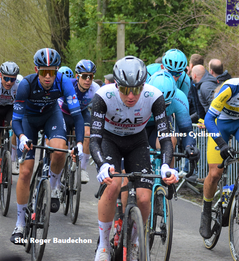 Au niveau de la course, le démarrage fut assez tardif. Le peloton est resté un bon moment groupé. Les chutes ont été (très) nombreuses et marquantes. De bons coursiers ont abandonné. Un autre a été exclu à juste titre après s’être adonné à une manœuvre irresponsable. Puis, ce fut les grandes manœuvres. Dans le « KORTEKKER », nous n’avons pas compris cet « arrêt sur image » des « DSM ». Une nouvelle mode ??? Mettons en évidence ROBEET et VAN KEIRSBULCK qui ont vraiment crevé l’écran. Citons également GRIGNARD et DE BUYST qui se sont bien montrés à défaut de pouvoir gagner. C’est aussi le but. Du côté de « ICW », c’est la soupe à la grimace. Trois coursiers sont montés dans l’ambulance. Les côtes et les tronçons pavés se sont succédés à un rythme d’enfer. L’échappée a été reprise par les « costauds » tout désignés. La bande à VAN AERT n’a peut-être pas trouvé la faille mais a pesé sur la course. POGACAR fait le forcing plusieurs fois dans le « VIEUX QUAREMONT » et part vers une victoire méritée. Quel champion !!! Tout comme VAN DER POEL qui ne s’est jamais avoué vaincu. PEDERSEN fait une beau 3e. VAN AERT est 4e. POWLESS impressionne pour une première de ce genre. ASGREEN sauve l’honneur pour « SOUDAL ». Un « RONDE » magnifique.