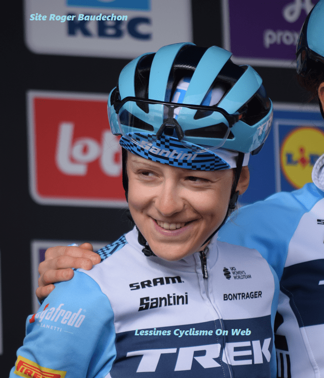 Lors de la « BRABANTSE PIJL » 2023, BRAND (leader) a été questionnée à propos de l’équipe « TREK-SEGAFREDO » qui était alignée. Elle ne pouvait pas mieux expliquer que Gaia REALINI (21 ans) était très certainement la plus petite coureuse du peloton (1 m 50 – 40 kg) MAIS qu’elle était surtout une pointure sur les épreuves qui grimpent. Lors de la dernière « FLÈCHE WALLONNE », nous avons tous pu voir REALINI se déchainer pour prendre la troisième place derrière VOLLERING et LIPPERT. Quelle course !!! Bravo !!! Jusqu’en 2022, elle est dans le team « ISOLMANT-PREMAC-VITTORIA » – CT. Elle réalise de belles performances : 2e des jeunes sur le « GIRO » et 1ere des monts au « TOUR DE TOSCANE ». Elle vient d’intégrer « TREK » et dispose d’un contrat jusqu’en 2025. Les résultats ne se font pas attendre : 2e du général du « UAE TOUR », 1ere du « TROFEO ORO », … et 3e de la dernière « FLÉCHE W ». Elle fait partie de l’effectif pour « L-B-L ». Décidément, les italiennes ont un vivier incroyable.