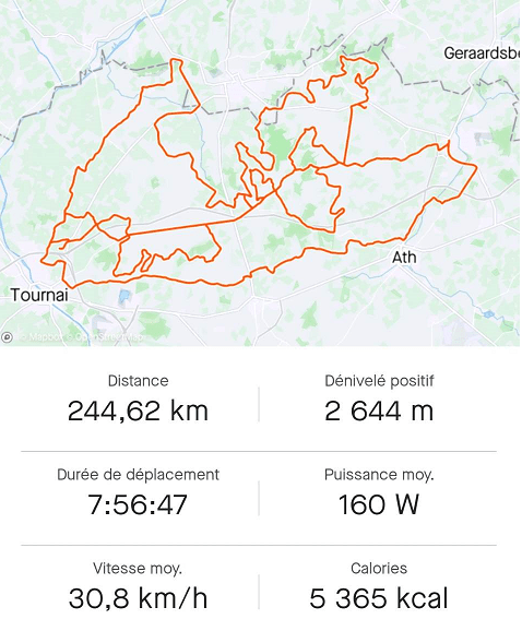 Pour cette « GRINTA », il y avait deux groupes. Le premier sur le 165 km et le second sur le 165 km +. Voici le trajet du 244,62 km.