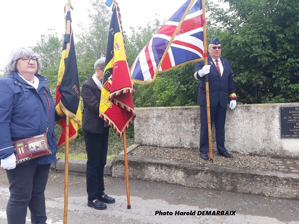 HaroldD portait le drapeau anglais à la stèle située près de la Route Industrielle (aviateur sur site)