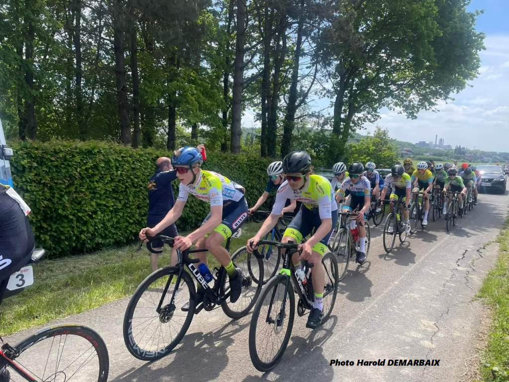 Yanis était un rien déçu après le CHAMPIONNAT FCWB. Dans un peloton énorme et au sprint. Il était enfermé. Il est donc reparti à BECLERS le couteau entre les dents. Patatras !!!Voici ce que HaroldD nous rapporte : « Il y avait plusieurs côtes au menu pour 61 coureurs au départ. Au fil des tours, le peloton perd des unités. Malheureusement, à trois tours de la fin, Yanis bien placé dans le peloton, voit un de ses coéquipiers chuter dans la côte. Il entraîne plusieurs coureurs ainsi que Yanis. Le gamin repartira. Mais plus moyen de reprendre le peloton ou la bagarre est déclenchée. Il finira à quelques mètres du peloton. Il est 25éme et très déçu ».