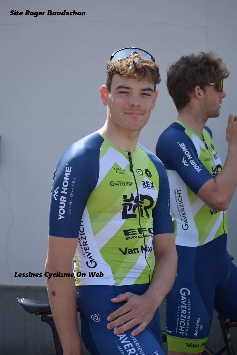 Ben SQUIRE (21 ans – « EFC-L&R-VAN MOSSEL ») a été formé chez les « ONDER ONS PARIKE ». Cela fait quelques années que nous le suivons. Chez les jeunes, il avait déjà du potentiel. Le résident de ZOTTEGEM s’est donné un délai pour réussir à passer professionnel. Il est au sein d’une très bonne équipe et c’est tout ce que nous lui souhaitons. Outre « ONDER ONS », il est aussi passé par « HOME SOLUTIONS-SOENENS » et « VDM-TRAWOBO ». A son palmarès, de très bons résultats en Débutants. Très bon en seconde année des Juniors. Apprentissage en passant chez les Espoirs. En 2022, il progresse et montre plus sérieusement le bout du nez. Et en 2023, il score dans de grandes épreuves : 10e au « WAASLAND », 11e à « BREDENE-KOKSIJDE », 7e au NATIONAL de CLM ESP, 41e à « PARIS-ROUBAIX » ESP, 1er à KOOLSKAMP, … . Un coursier à suivre !!!