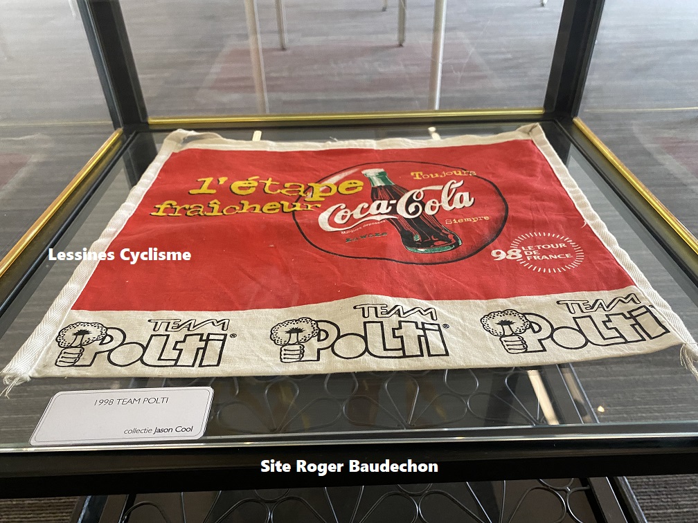 Lors du « TOUR DE FRANCE » 1998, l’organisateur fournissait des musettes aux couleurs du sponsor « COCA COLA ». Une seconde d’entre elles sera présentée sous peu. Les bidons étaient identiques. Le team « POLTI » était composé de : ATIENZA, BRASI, CASSANI, CELESTINO, COLLEONI, CREPALDI, GUALDI, GUERINI, les GUIDI, JAKSCHE, LEBLANC, MARTINELLO, MERCKX A, REBELLIN, ROKIA, SACCHI, SALVATO, VALOTI, ZINETTI. Sur le « TOUR » dont il est question, STANGA avait aligné : LEBLANC, BRASI, CREPALDI, les GUIDI, JAKSCHE, MARTINELLO, MERCKX et SACCHI. L’équipe ne remporta pas d’étapes. Par contre, elle placera Axel MERCKX (10e) et JAKSCHE (18e) au général. Au classement des jeunes, JAKSCHE est 5e alors que SACCHI est 9e. L’équipe « POLTI » terminera 6e. En 1998, l’étape 17 fut neutralisée par les coureurs eux-mêmes. La police était partout. Jour et nuit. Evoquer « 1998 », c’est aussi signaler que lors de la 7e étape, le team « FESTINA » fut exclu. D’autres sont partis sans préavis. Pour montrer leur mécontentement. Les journées étaient comptées. L’édition était à deux doigts de sombrer. Jean-Marie LEBLANC – Directeur de l’épreuve – parviendra à trouver un consensus, avec les rescapés, pour que cet événement planétaire arrive à son terme.