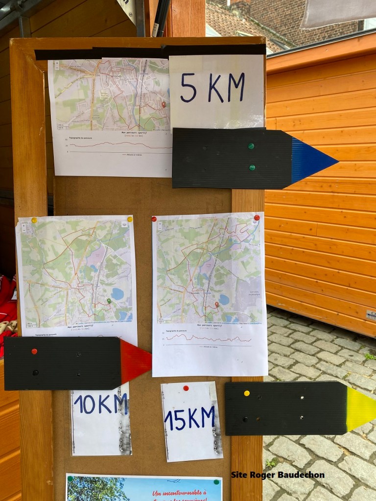 Vous aviez le choix entre trois distances (voir ci-dessous) Nous avons opté pour le 5 km. Un parcours urbain. Qui nous emmenait par des sentiers et chemins assez rarement pratiqués. Finalement, plus de pluie et même un 20° accompagné d’un beau soleil vers midi. Ils étaient un peu plus de 200 à avoir répondu aux attentes des organisateurs.
