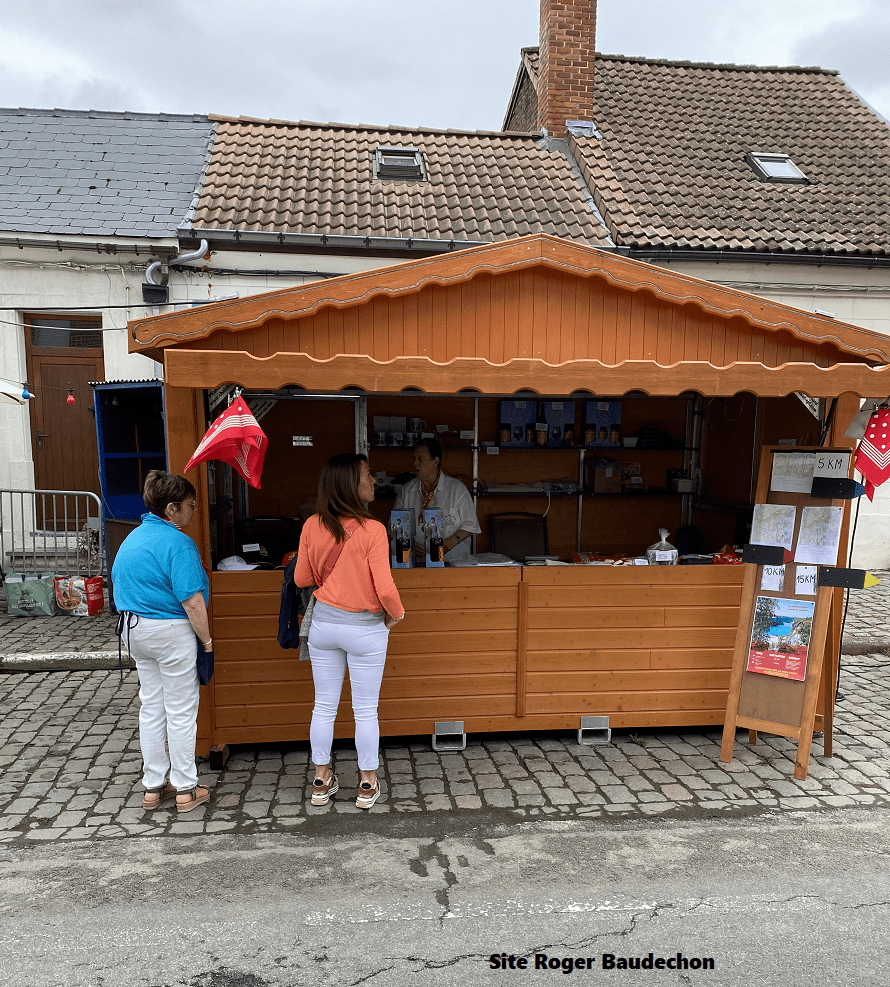 Très matinalement, la météo était détestable. L’imperméable était nécessaire. Nous avions rendez-vous vers 10h00 au THÉATRE DE VERDURE. Et comme par miracle, le temps s’éclaircissait. Outre l’inscription, le chalet du « ROYAL VÉLO CLUB SAINT-ROCH » proposait également des « souvenirs » de la fête des Cayoteux.