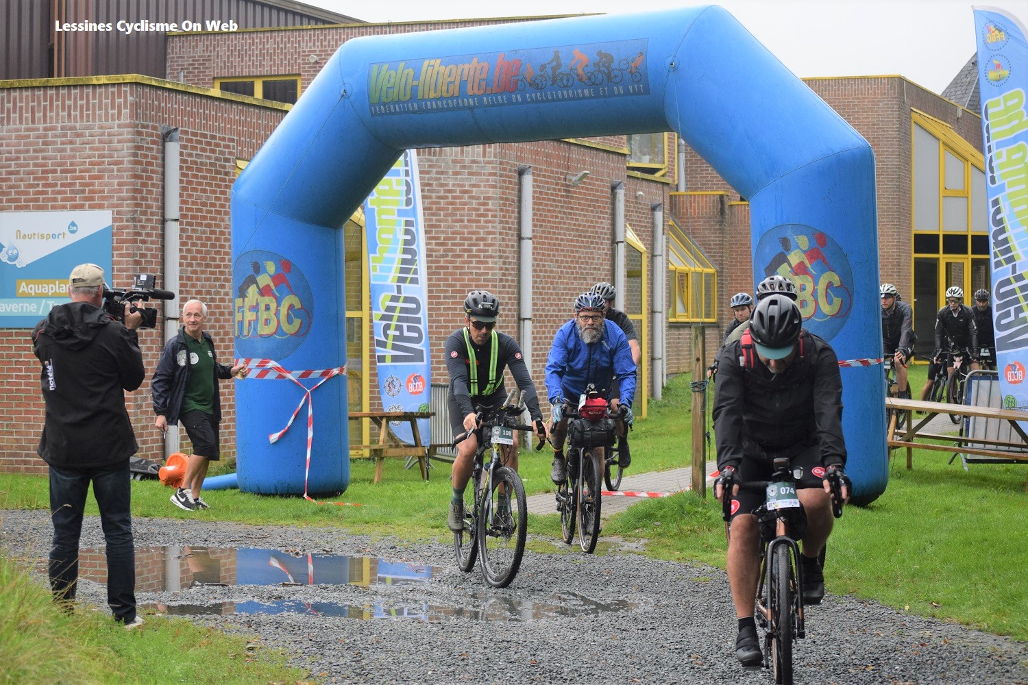 Samedi matin, le temps Ă©tait très pluvieux. La nuit avait Ă©tĂ© bien arrosĂ©e. Toutefois, il en fallait plus pour faire reculer des baroudeurs (dames et messieurs) motivĂ©s. A 09h00, le premier groupe s’Ă©lance. Quelques minutes plus tard, le second dĂ©colle. (randonneurs et touristes) Le vĂ©lo bien chargĂ©, ils sont plusieurs centaines Ă passer sous l’arche de la « FFBC ». Les membres du « CYCLO BOL D’AIR » et du « NAUTISPORT » avaient tout prĂ©vu. En ce y compris des activitĂ©s dans la grande salle. (pour la « FĂŠTE DU VELO » – cf autre post)