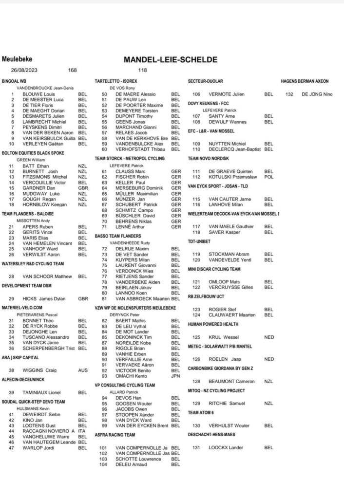 1 VANGHELUWE 2 TAMINIAUX 3 RACCAGNI … 5 DUPONT 6 VERMOTE 7 APERS 9 BLOUWE 17 NUYTTEN 19 WARLOP 22 MARCHAND 24 LANHOVE 25 STOCKMAN A 27 PEYSKENS 30 SANTY 33 KINO 35 VERCOUILLIE 37 SCHERPENBERGH, 46 DERYCK 50 VAN CAUTER 53 TUSCANO 57 DESMARETS 63 VERWILST 73 BONNET 76 VERLEYEN 84 RELAES …