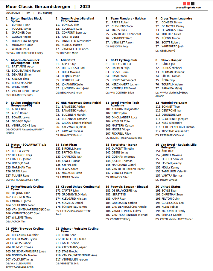 Liste (provisoire, nous attendons celle de Grammont) Merci PRO CYCLING STATS.
