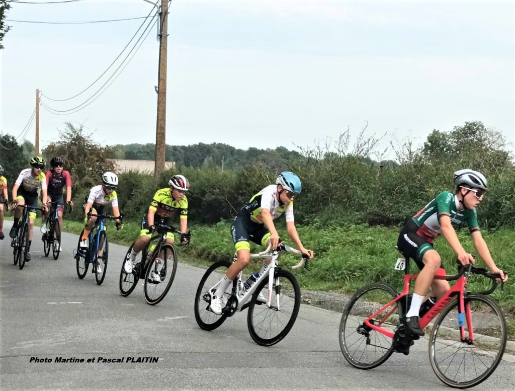 Diego SAUVAGE (casque blanc), jeune coursier d’Isières, est en forme. Déjà la semaine dernière, il était arrivé avec le groupe qui luttait pour la gagne (8e). Cette fois à MOUSTIER, l’aspirant 13 ans a une fois de plus montré le bout du nez. Il était avec le groupe pour la première place. Il termine 8e. PascalP signale que chez les MIN/ASP, le physique peut varier du tout au tout. Quand vous voyez la différence de taille, cela laisse songeur. Mais Diego n’en a cure. Il se donne sans compter.