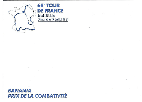« BANANIA » présente « LES GÉANTS DU TOUR DE FRANCE ». Cette carte postale est la première publication. Il y en aura une seconde la semaine prochaine. Elles ne seront pas toutes postées.