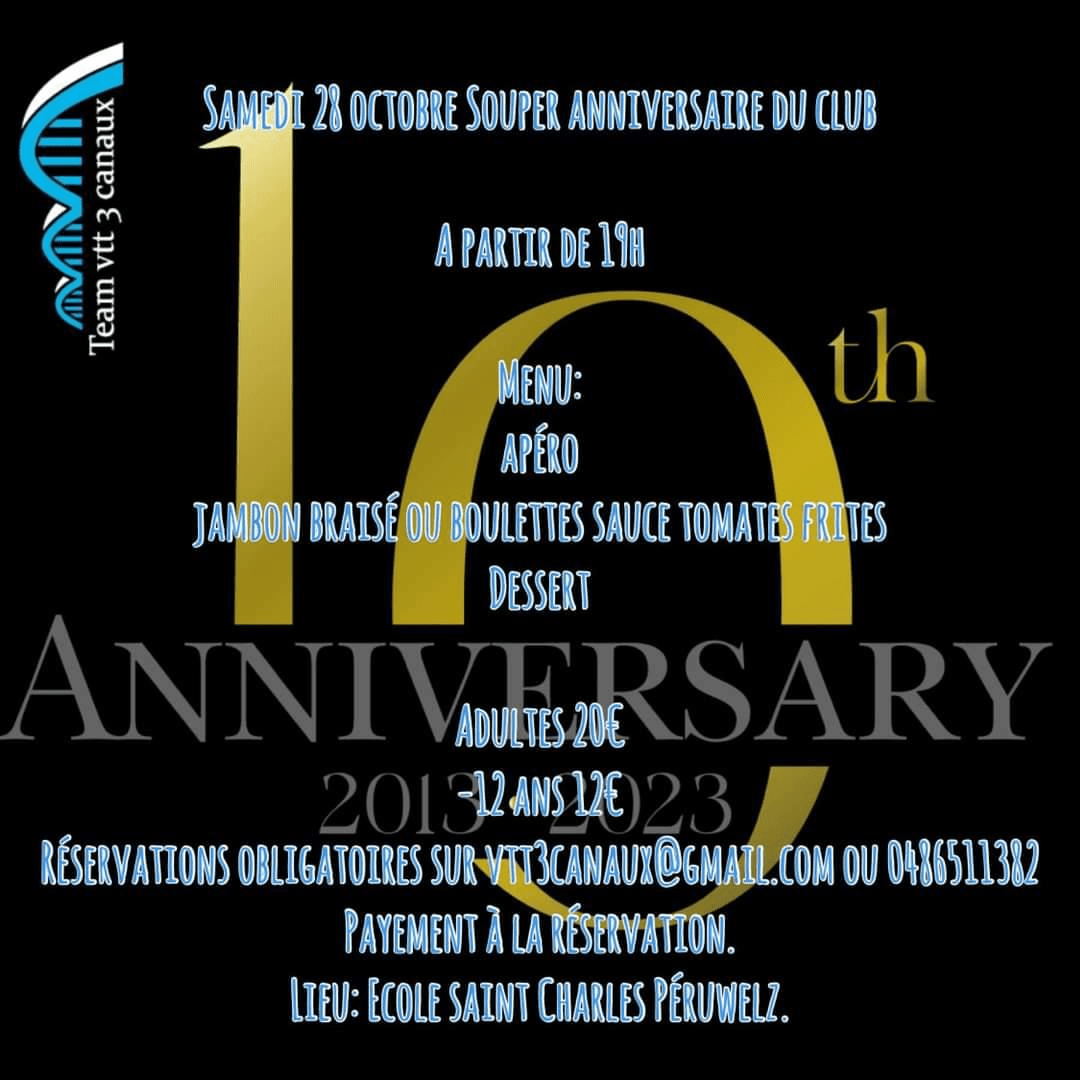 Le « TEAM VTT DES TROIS CANAUX – BLATON » fêtera son 10eme anniversaire en date du 28 octobre à PERUWELZ.