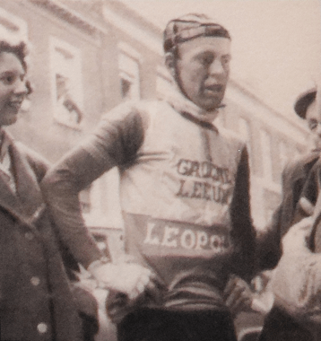 Réponse. Bien que le cliché soit de piètre qualité, il était possible de reconnaitre Noël FORÉ (✝ 61 ans) dans son maillot « GROENE LEEUW-LÉOPOLD » (1959). Sur le cliché, il est à « PARIS-ROUBAIX ». Course qu’il vient de remporter. Il a été professionnel de 1957 à 1968. FORÉ était une des grandes pointures de l’époque. A son palmarès (bref) : « GAND-WEVELGEM », « LE TOUR DES FLANDRES », … . Vous disposez d’un « SOUVENEZ-VOUS » sur ce site.
