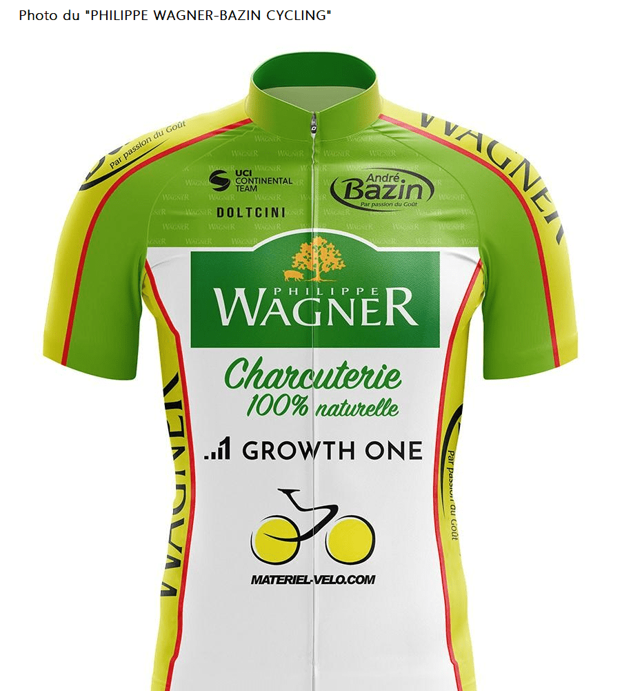 Débutons par le maillot. C’est hier soir, lors de la présentation du team « PHILIPPE WAGNER-BAZIN CYCLING » (en France), que la nouvelle tenue a été dévoilée à la presse et au public. Un équipement de qualité produit par « DOLTCINI ». Les sponsors : « PHILIPPE WAGNER », « André BAZIN », » 1 GROWTH ONE INVESTISSEMENT » et « MATÉRIEL VÉLO.COM », sont en bonne position. Les Autres sponsors seront détaillés par la suite. Cette CONTINENTALE UCI est inscrite en Belgique mais sa structure est établie en France. Elle espère briller. Elle en a les moyens !!!