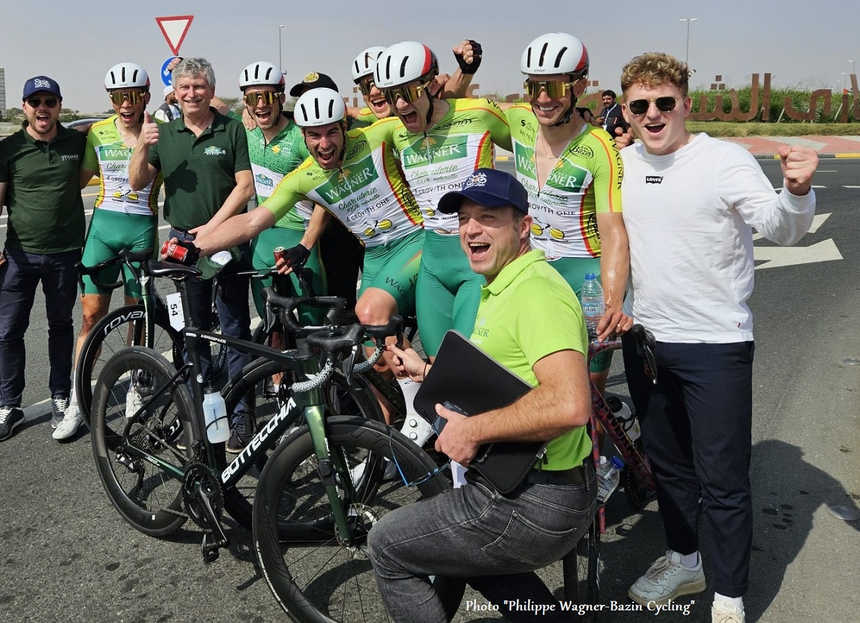 Mr Philippe WAGNER – PrĂ©sident du team Ă©ponyme – avait bien fait de se dĂ©placer aux « EMIRATS ARABES UNIS » pour assister au « SHARJAH TOUR » (26-31/01). Son Ă©quipe a bien montrĂ© le maillot durant les cinq jours de course. Comme vous aurez pu le remarquer dans un post prĂ©cĂ©dent (rĂ©sultats), Pierre BARBIER (dĂ©tail Ă venir) a rĂ©alisĂ© un fameux numĂ©ro. Gain de deux Ă©tapes et le maillot final des sprints. Par ailleurs, l’esprit d’Ă©quipe a très bien fonctionnĂ© (3e). Notons la 10e place – gĂ©nĂ©ral – de Quentin BEZZA, 12e Mathias VANOVERBERGHE, 18e Kasper SAVER, 30e Pierre BARBIER, 32e Rudy BARBIER, 40e Jens VANDENBOGAERDE. Le tout, avec un encadrement qui met l’effectif aux petits soins !!!