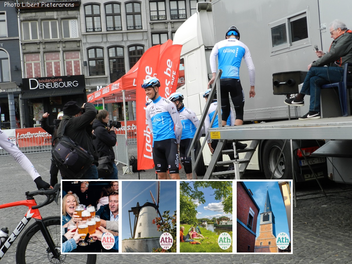 2023. Le départ du « GP CRIQUIELION » sur la Grand Place de la Ville d’Ath. Deux « premières » en une. ATH, après DEUX-ACREN, SILLY et LESSINES. Un très bel endroit pour donner le départ de cette épreuve de renom. Et un changement de CATÉGORIE. Devenir une « 1.1 » était un rêve devenu réalité pour L’ENTENTE CYCLISTE ACRENOISE.