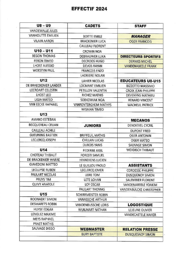 Voici l’effectif complet du TEAM de WALLONIE PICARDE.