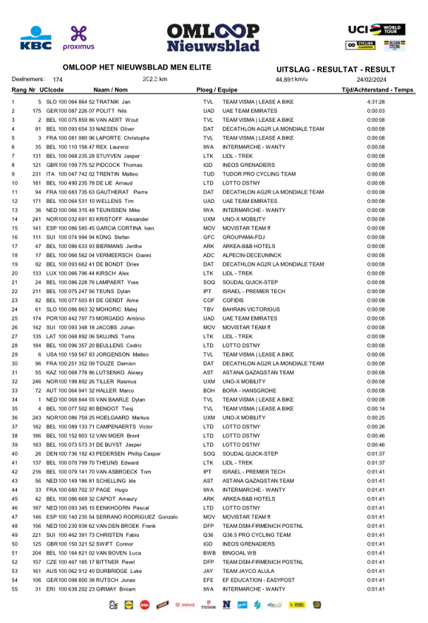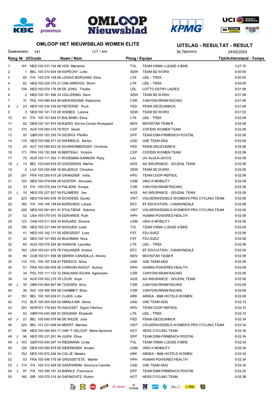 Classements. 50 premiers. Le reste sur « BELGIAN CYCLING » ou/et « CYCLING VLAANDEREN ».
