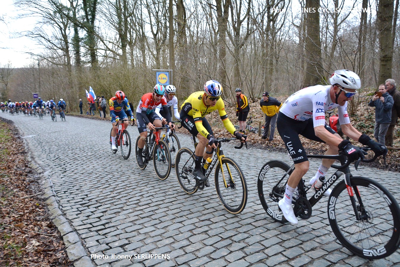 Les ténors se sont livré une belle bagarre sur le dernier « OMLOOP NIEUWSBLAD ». Une véritable guerre des tranchées. Les « VISMA-LEASE A BIKE » ont fait tourner les têtes. Jan TRATNIK part sur un mode de sénateur. VAN AERT, JORGENSON, VAN BAARLE et LAPORTE jouent les tampons. POLITT aura beau se mettre à plat ventre, il ne pourra faire mieux que second. Chez les dames, la « LONGO HOLLANDAISE » – Marianne VOS (36 ans) – reste plus que jamais dans une forme de championne !!! Quelle longévité. Merci à JhonnyS pour ses clichés pris dans le HAAGHOEK (avant le LEBERG) et dans le BOSBERG. Top.