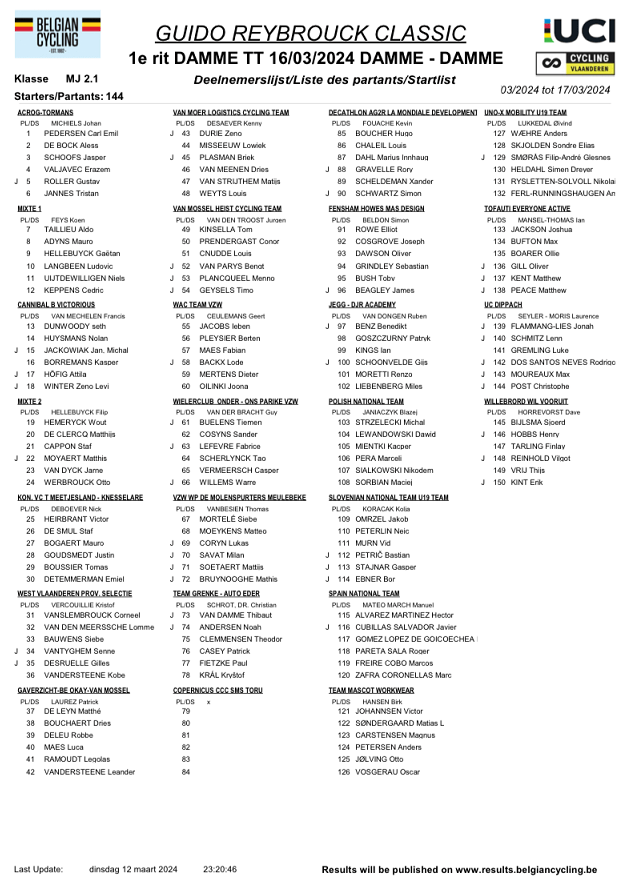 La « GUIDO REYBROUCK CLASSIC » est une épreuve internationale pour JUN. Elle est disputée sur deux jours dans la région de DAMME, près de Bruges. Pour information.