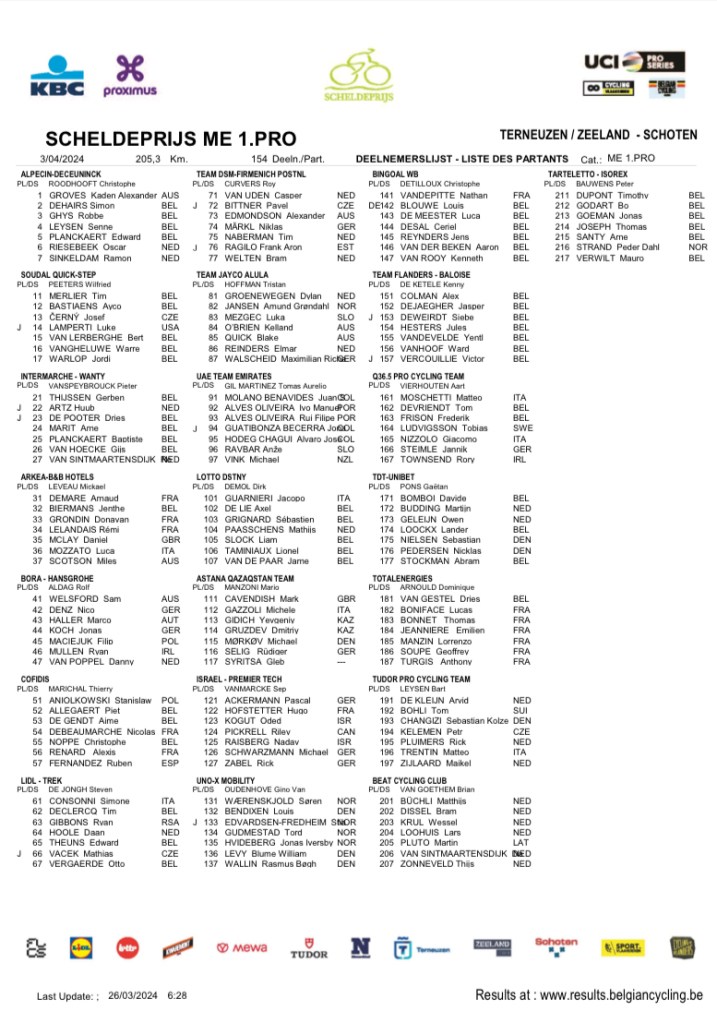 Poursuivons avec le « GP DE L’ESCAUT/SCHELDEPRIJS » plutôt réservé aux sprinteurs. Une parenthèse avant de penser à « PARIS-ROUBAIX ». Pour DAMES et MESSIEURS.