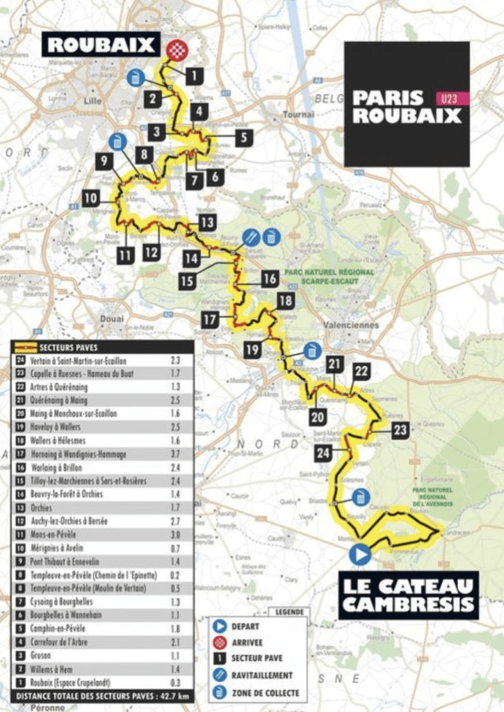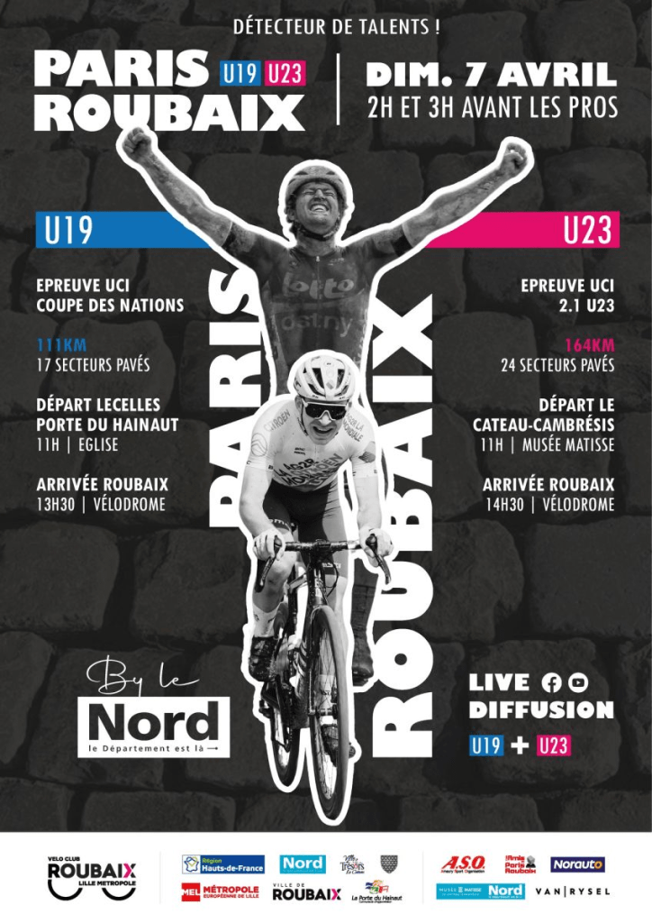 Quand vous évoquez « PARIS-ROUBAIX », c’est comme une forêt. Les arbres sont tellement nombreux que vous parvenez difficilement à trouver la sortie. Dans ce post, nous allons nous limiter au « PARIS-ROUBAIX » des JUNIORS – Coupe des Nations, des ESPOIRS – UCI 2.1, des ELITES DAMES – 1.WWT et des ELITES MESSIEURS – 1.UWT. Ce qui sera déjà bien. Enfin, dans d’autres posts, nous annoncerons le « PARIS-ROUBAIX CHALLENGE », le « PARIS-ROUBAIX CYCLOTOURISME ». Plus tard, il y a le « PARIS-ROUBAIX VTT » et le « PARIS-ROUBAIX GRAVEL ». Ce n’est pas terminé. Le « MINI PARIS-ROUBAIX » (jeunes) est également au calendrier. Si vous cherchez bien, vous en trouverez d’autres tant la METROPOLE LILLE-ROUBAIX est attachée au cyclisme. Pour notre part, nous en resterons à ce qui a été cité.