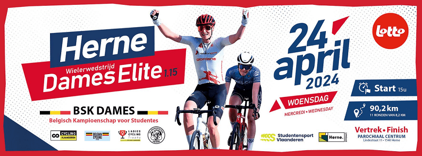 Mercredi 24 avril, en même temps qu’une épreuve pour DAMES 1.15, c’est le « CHAMPIONNAT DE BELGIQUE » pour ETUDIANTES à HERNE – « LADIES CYCLING TROPHY ». Départ : 15.00.