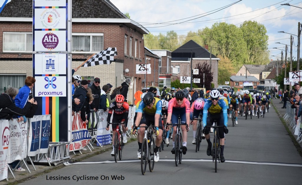 La pré-liste nous transmise par l’organisateur n’en faisait pas mention. Finalement, après sa sortie de GELUVELD (samedi) où il termine 8e, il doit avoir décidé de remettre le couvert à DEUX-ACREN (dimanche). Il est manifestement en condition. Tommy DELESTRAIT (« CRABBE-DSTNY » CC CHEVIGNY) est un régional qui a un sérieux potentiel. Dans la localité du CRIQUE, c’est un peloton de 89 JUNIORS qui a signé la feuille de départ. Du beau monde !!! Une échappée part assez rapidement. Un équipier de DELESTRAIT est dans la bonne. Derrière, il faut temporiser. Ils seront trois pour la lutte finale. Un peu plus de 03 minutes plus tard, c’est un peloton restreint qui déambule dans la dernière ligne droite. DELESTRAIT ne laissera personne le remonter. Il prend une très belle 4e place devant le regard admiratif de ses supporters dont celui de Christian DEBUYSSCHERE (« MOLTENI »). Bravo pour cette performance qui en appelle d’autres.