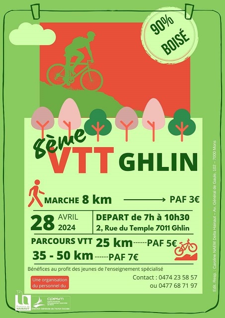 Le 28 avril 2024, le « VTT TEAM LESSINES » : Bibi et DavidL, s’est rendu à GHLIN pour participer à une activité organisée au profit des jeunes de l’enseignement spécialisé. Plusieurs distances étaient envisageables. Les bikers rapportent que le parcours et le ravito étaient impeccables. C’était aussi l’occasion de constater que plusieurs clubs régionaux avaient fait ce déplacement. Top dimanche.