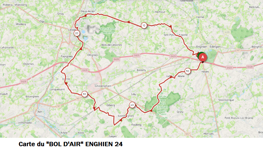 Lundi 20 mai 2024, le « BOL D’AIR » d’ENGHIEN organisait sa traditionnelle randonnée de la Pentecôte. « LA BOLDAIRIENNE » permettait aux amateurs de choisir des distances allant de 50 à 130 km – la plus longue allait jusqu’à l’entrée de TOURNAI. Le départ matinal était frisquet – 12°, temps gris, vent du NO, … . Mais en décollant vers 12.00, la journée était différente – 20°, ciel bleu, vent très fort du NO, … . Par contre, comme les inscriptions se font souvent dans de courts délais, c’est plus compliqué de participer financièrement au processus (mais c’est fait). Nous avons opté pour le 50 km. Il venait d’Enghien via Deux-Acren. Passait dans la ville de Lessines. Et repartait à son point de départ en prenant par le bois de Saint-Marcoult (Glagla … ). Notez qu’au Pont-Rouge, une déviation orientait les cyclos vers le Chemin de Chièvres. Le ravito était en bord de Dendre. Il fallait une attention de chaque instant. Ainsi, un tournoi se tenait au terrain de foot d’Isières. Quelle circulation !!! Il était nécessaire de déclipser lors de la traversée des nationales. Le 45 km était d’une difficulté moyenne (tout de même +/- 400 D+). Campagnard. Fléchage top, parcours top, … . Journée impeccable.