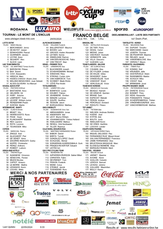 Le « FRANCO-BELGE » – 6e des 9 manches de la « LOTTO CYCLING CUP » – déroulera ses kilomètres dans la proche contrée. Avec TOURNAI et MONT-DE-L’ENCLUS en point de mire. Il est évident qu’une superbe journée est au programme. Comme l’an dernier. Ne perdons pas de temps, passons aux informations que vous attendez certainement avec impatience.
