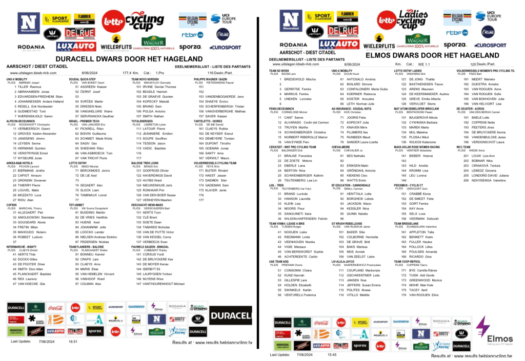 7e des 9 manches de la « LOTTO CYCLING CUP », la « DURACELL DWARS DOOR HET HAGELAND » a lieu le même jour que la « ELMOS DWARS DOOR HET HAGELAND » 5e des 6 manches de la « CUP » pour les dames. Les villes de AARSCHOT et de DIEST sont organisatrices.