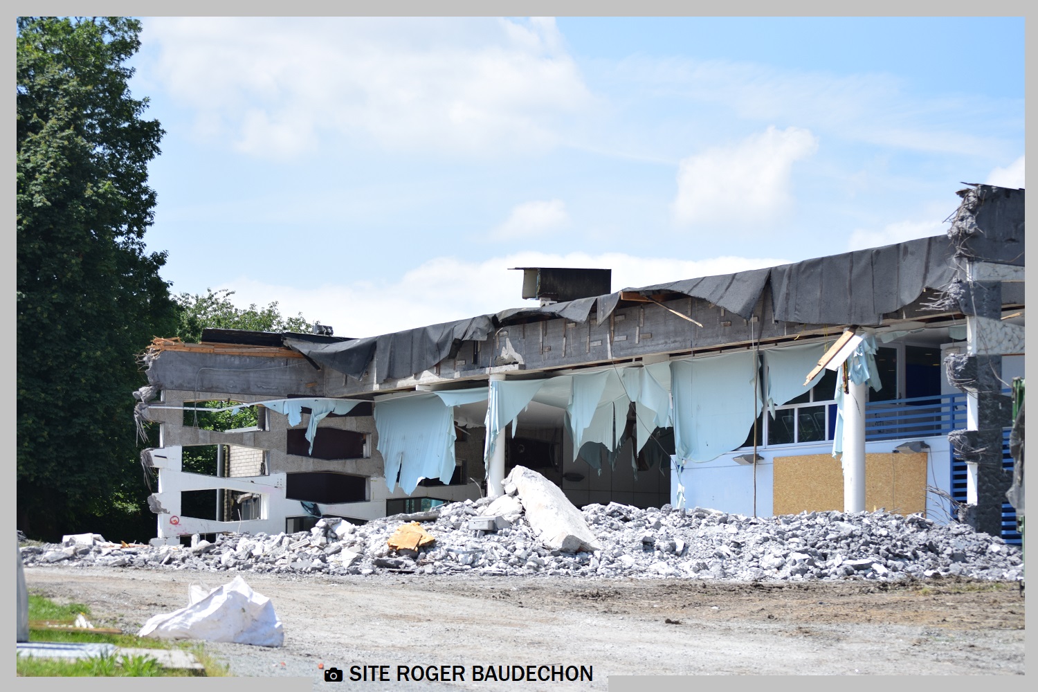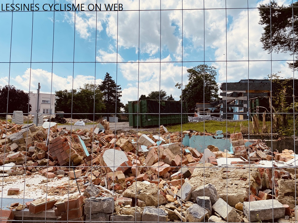 Un cliché pour les régionaux du « BOUT DU MONDE » – les autres savent. L’ancienne piscine de LESSINES, la MAISON DE LA LAICITE et la MAISONNETTE SOCIALE sont RASEES. AVosVélos!!! Pour voir le chantier.