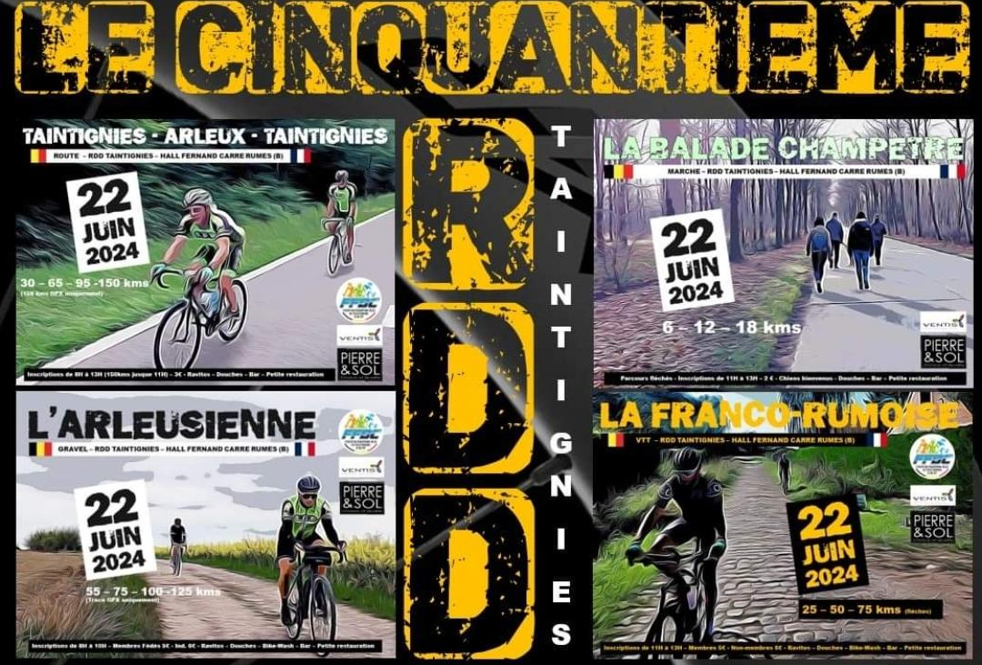 Ce 22 juin, le « RDD TAINTIGNIES » – RANDONNEURS DU DIMANCHE – fêtera son cinquantième anniversaire à RUMES. Le rendez-vous est fixé au HALL FERNAND CARRE : MARCHE-VTT-GRAVEL et CYCLOTOURISME. Plusieurs distances dans chaque discipline.