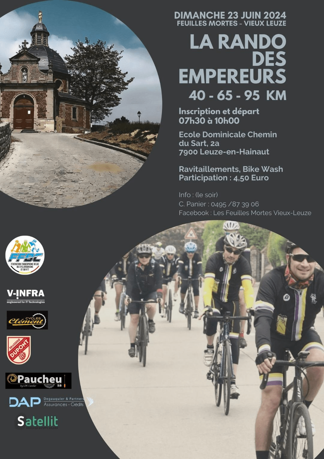 Le club de VIEUX-LEUZE est un assidu dans le calendrier de la « FFBC ». Dimanche 23 juin, « LES FEUILLES MORTES » passeront dans le périmètre lessinois. Et plus particulièrement à BOIS-DE-LESSINES pour la distance de 95 km.