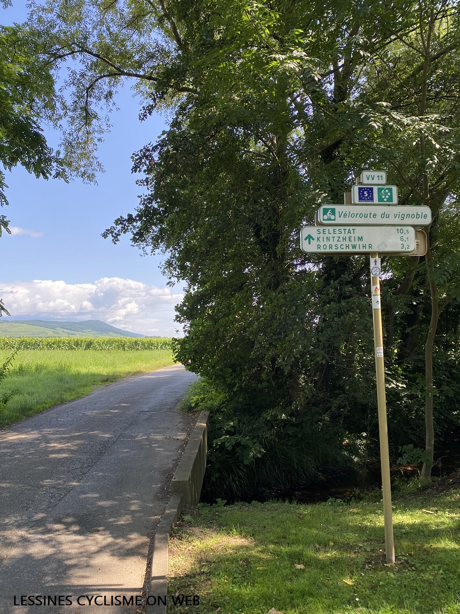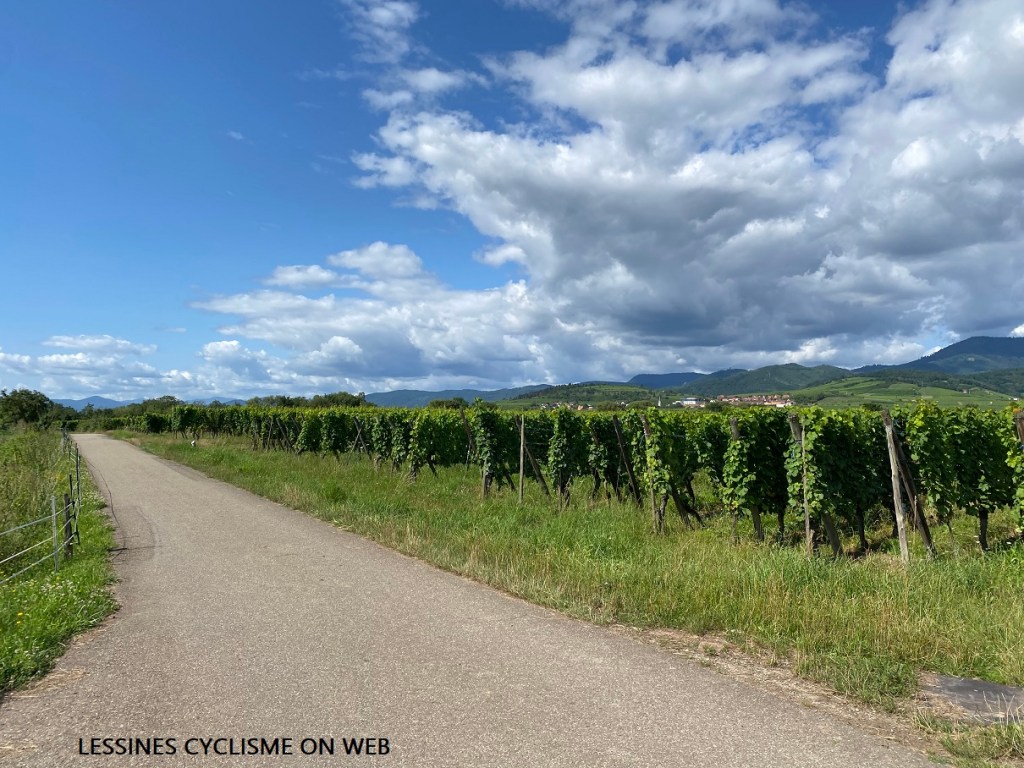 - La « VELOROUTE » est parallèle à la « ROUTE DES VINS ». Elle est calée entre cette même route et la Départementale qui joint STRASBOURG à MULHOUSE.