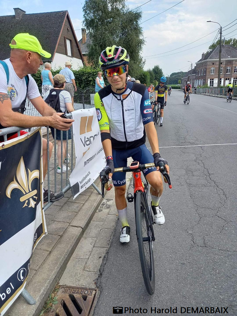 Ce mercredi, Yanis DUBOIS était à KOOIGEM (Courtrai) pour assister à la course pour JUN organisée par le « WIELERCLUBKOOIGEM ». Météo très lourde et soleil tenace. Yanis termine 61e sur 86 partants. L’épreuve était très internationale !!!